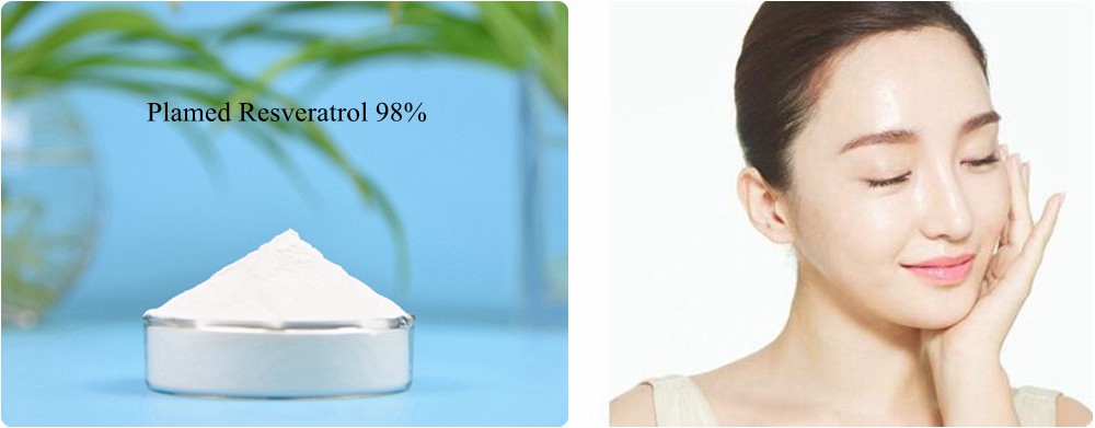 Resveratrol is a natural plant polyphenol. It is widely found in nature, such as hellebore, polygonum cuspidatum, grape, peanut, pineapple and other plants or fruits. Plamed Resveratrol is extracted from root of polygonum cuspidatum, belonging to natural cosmetics raw material. Resveratrol has strong antioxidant property. It can scavenge free radicals in the body, and promote skin cells’ metabolism. Also it regulates internal and external secretion. It can inhibit melanocytes formation; and its whitening effect is better than arbutin and ethyl ascorbic acid. Resveratrol also has UV absorbency with maximum UV absorption at 366nm. In addition, Resveratrol can inhibit the production of inflammatory related substance TxB2 (a metabolite of arachidonic acid). So it has anti-inflammatory and anti-allergic effect. Resveratrol can promote collagen secretion and SOD activity. Thereby it can improve the ability of skin immune cells, and maintain skin elasticity and thickness. Therefore, Resveratrol can be used as anti-oxidant, whitening agent, sunscreen, anti-inflammatory agent and anti-aging agent in cosmetics. It is of great application value in cosmetic market.